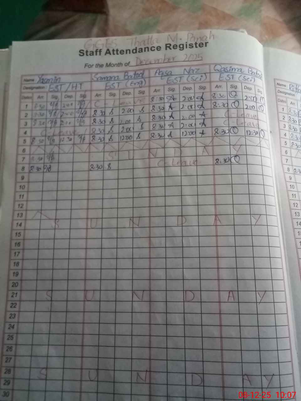 | 38**** | MU**** KA**** | CHOWKIDAR | Regular | 0 | 0 | 0 | 0 | 0 | 0 | 0 | 0 | 0 | Absent (Un-Authorized) |