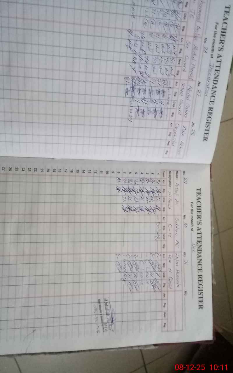 | 32**** | Kh**** Ba**** Sh**** | Regular | 0 | 0 | 30 | 0 | 0 | 0 | 0 | 0 | 0 | Absent (Un-Authorized) | |