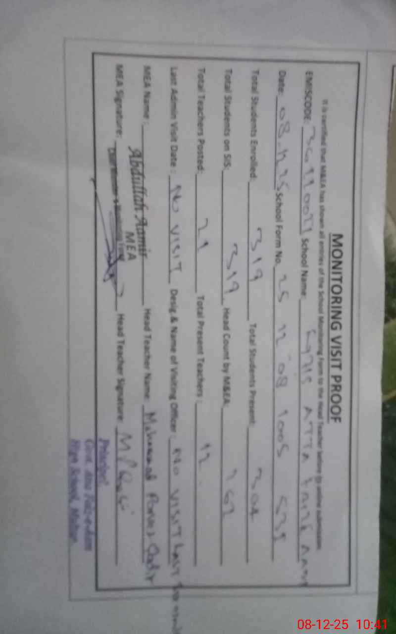| EMIS Code: 36110021 | Name of School: GHS ATTA FAIZ-E-AAM MULTAN NEAR T.V. BOOSTER | |||