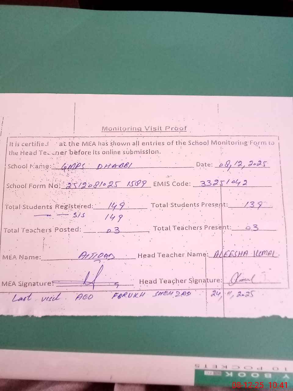 | EMIS Code: 33251042 | Name of School: GMPS DHABBI | |||