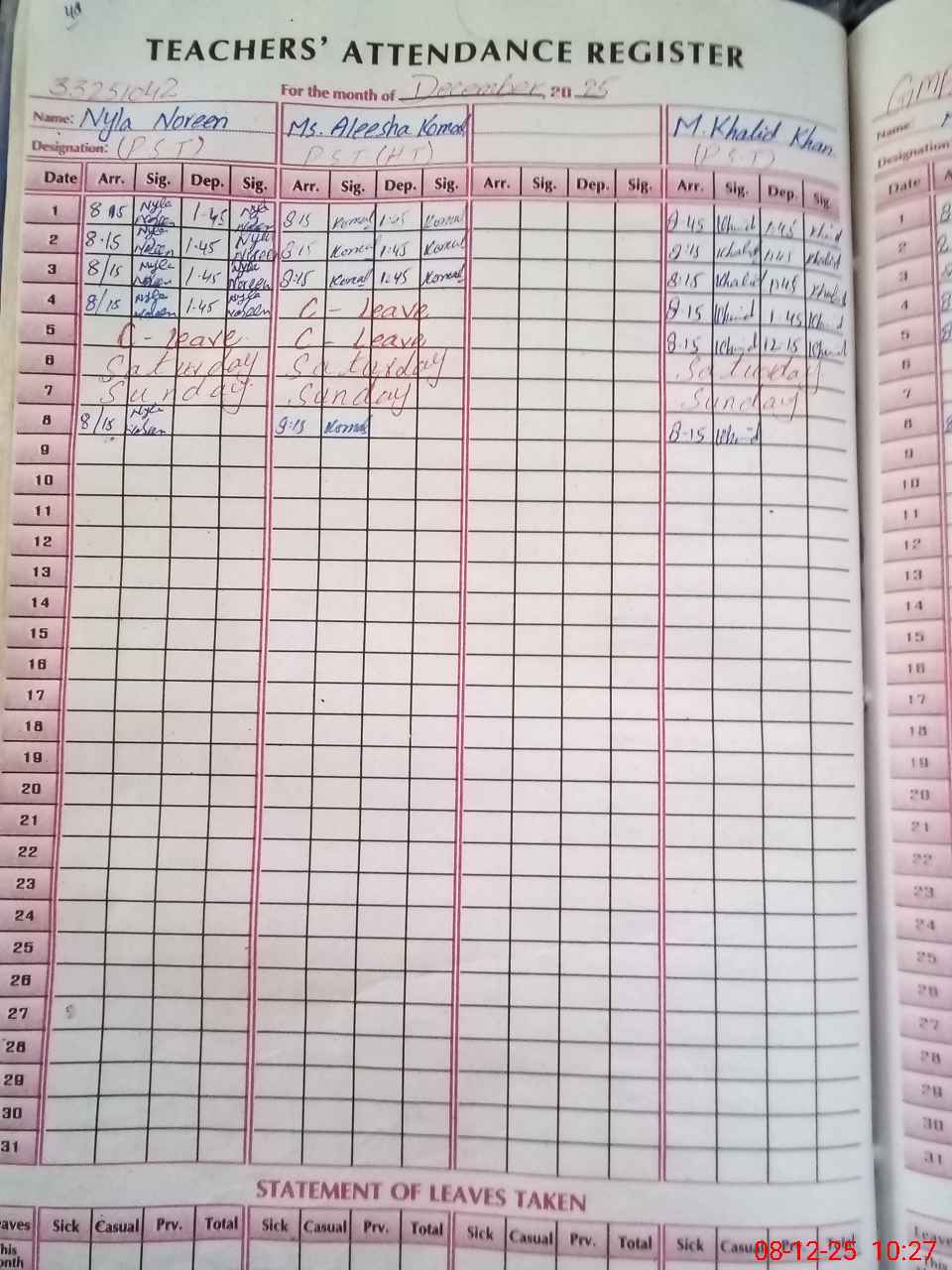 | Leave | Duty | Absent | Maternity | Medical | Ex- Pak |