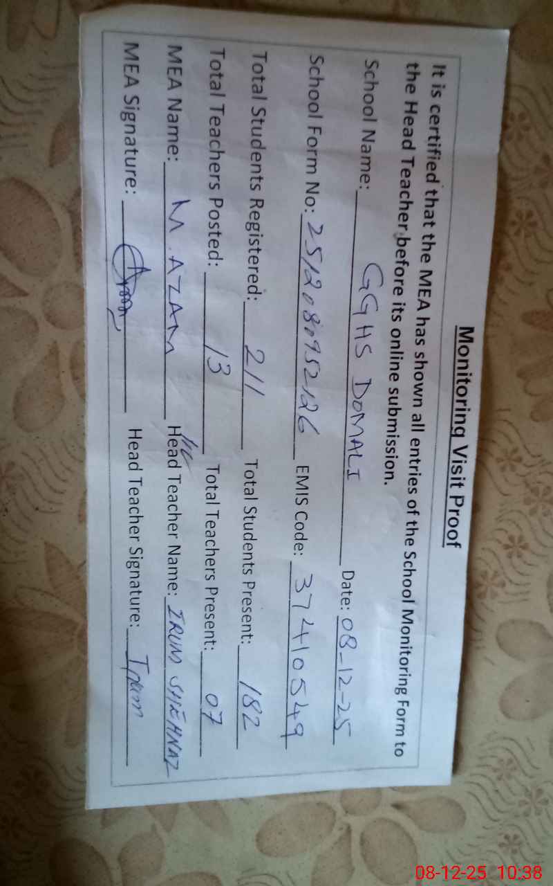 | EMIS Code: 37410549 | Name of School: GGHS DOMALI | |||
