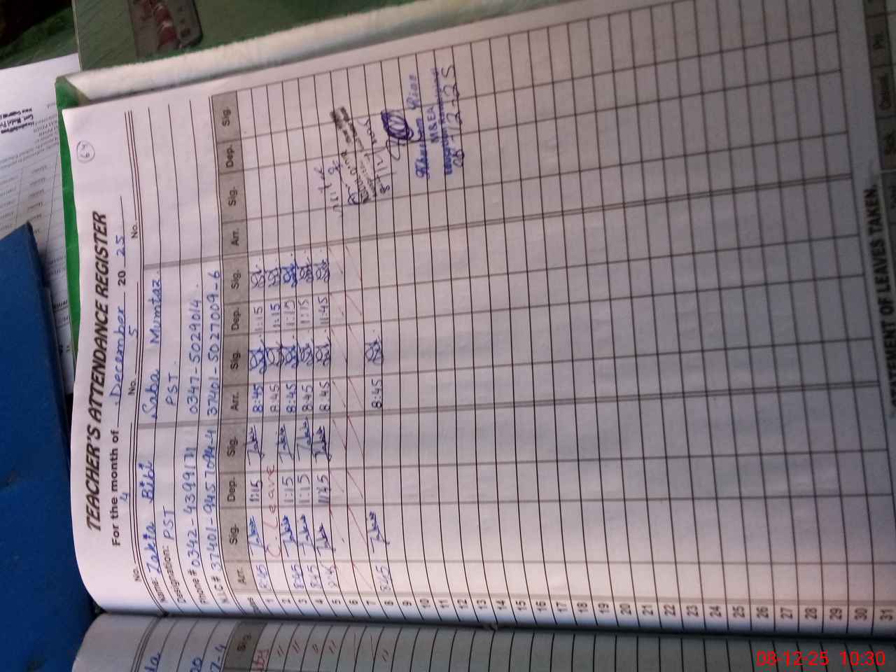 | Name: Sa**** Bi**** Designation: (School Headmaster's/Headmistress's) PST Phone/Cell Number: 03**** |