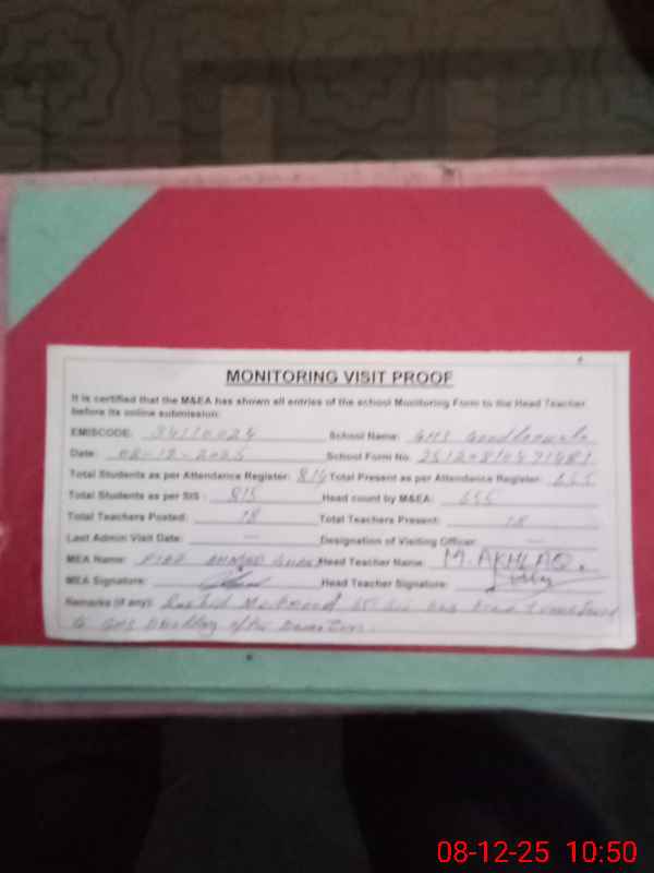 | EMIS Code: 34110024 | Name of School: GHS GONDLAN WALA | |||