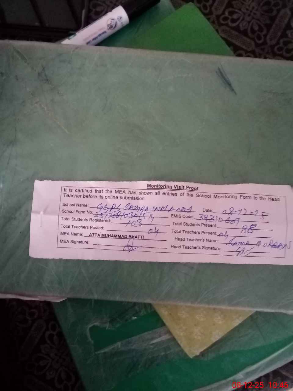 | Remarks (Use Separate Page if Required): Last admin visit by Dy DEO on 04 Dec 2025 | |||||