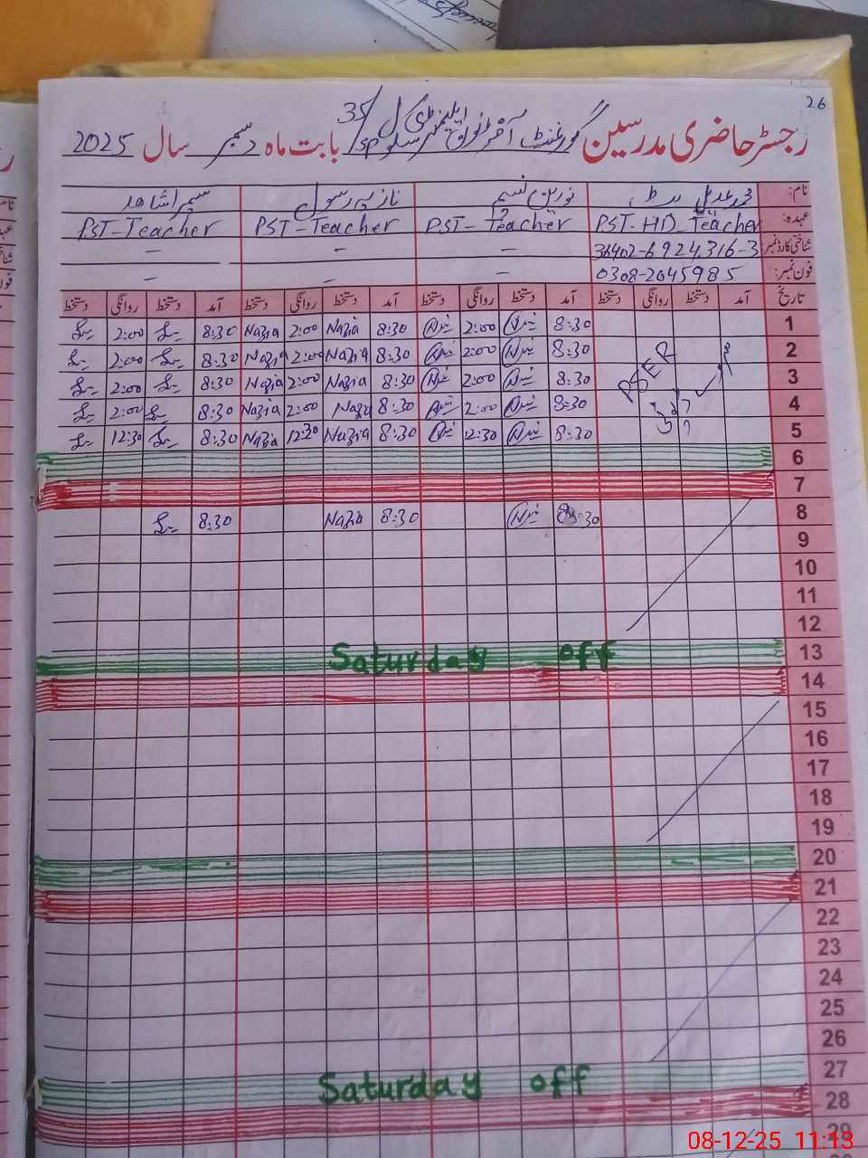 | Name: MU**** AD**** BU**** Designation: (School Headmaster's/Headmistress's) PST Phone/Cell Number: 03**** |