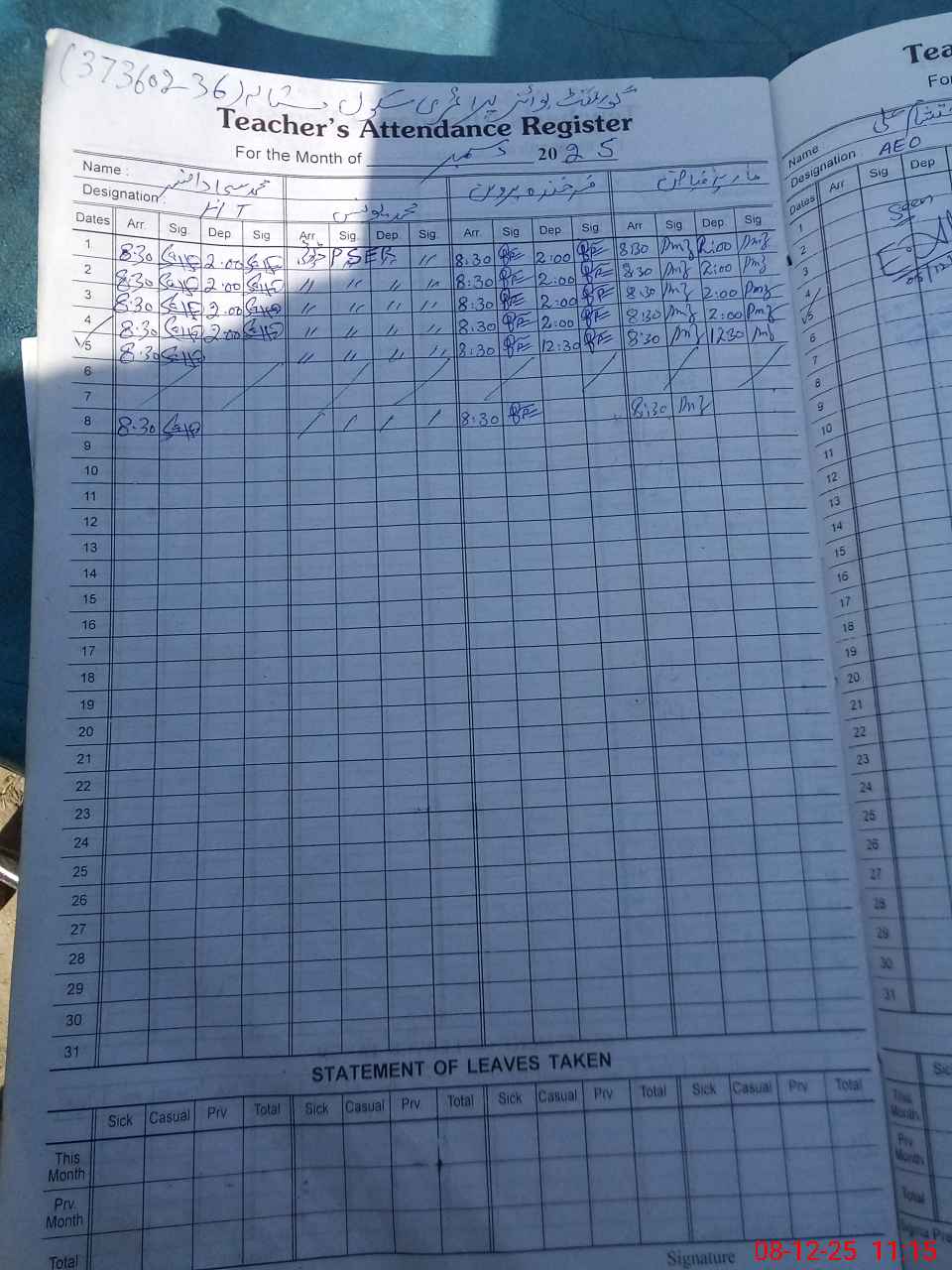 | Name: SA**** AF**** Designation: (School Headmaster's/Headmistress's) PST Phone/Cell Number: 03**** |