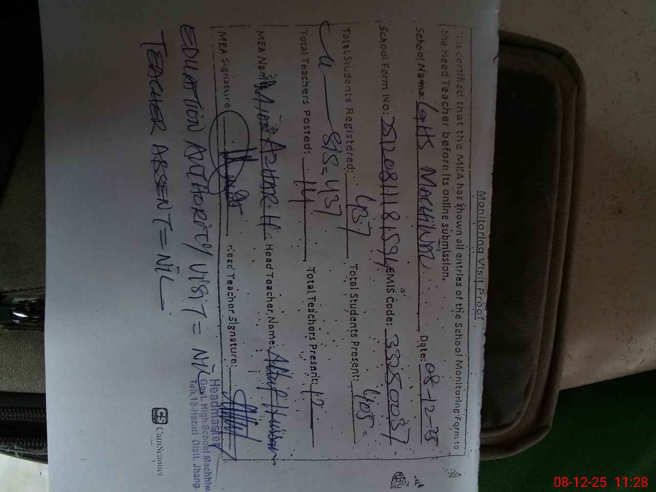 | EMIS Code: 33250037 | Name of School: GHS MACHI WAL | |||