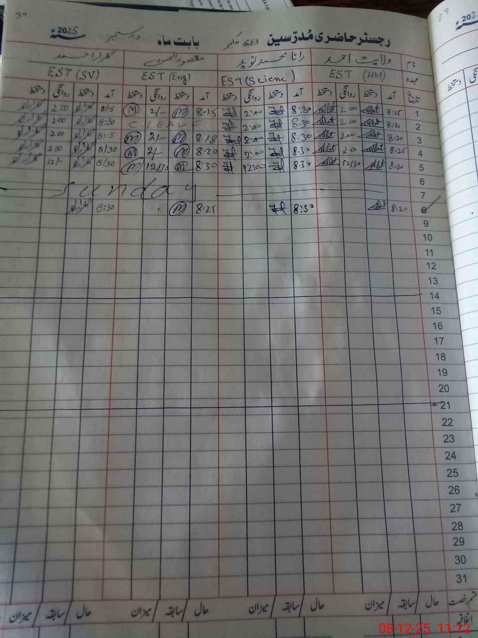 | CNIC | Full Name | Designation | R/C | Absence During Last Calender Month |
