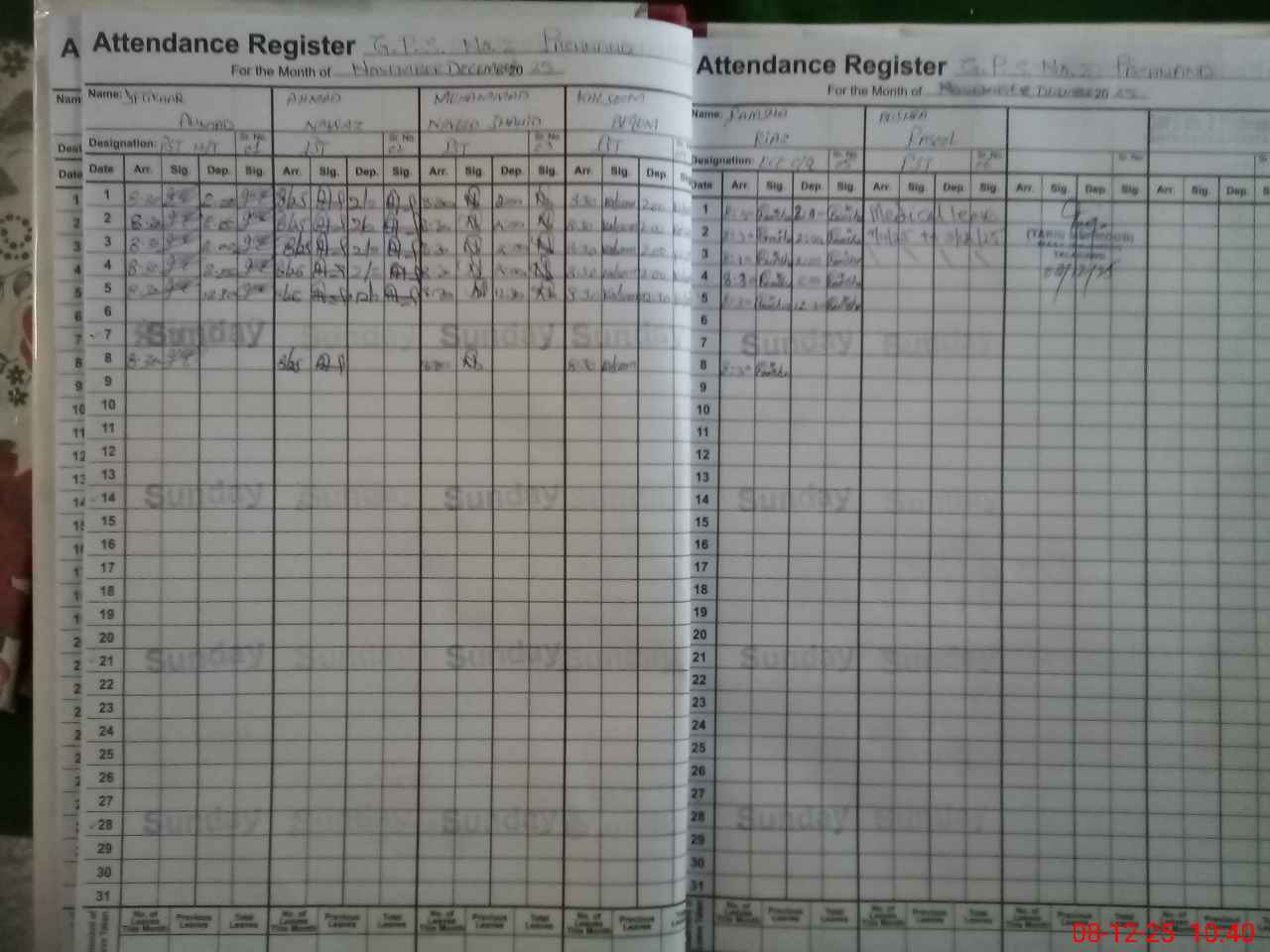 | CNIC | Full Name | Designation | R/C | Absence During Last Calender Month |