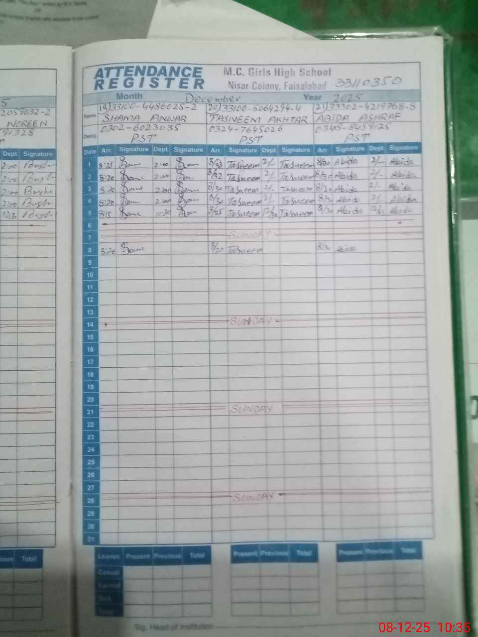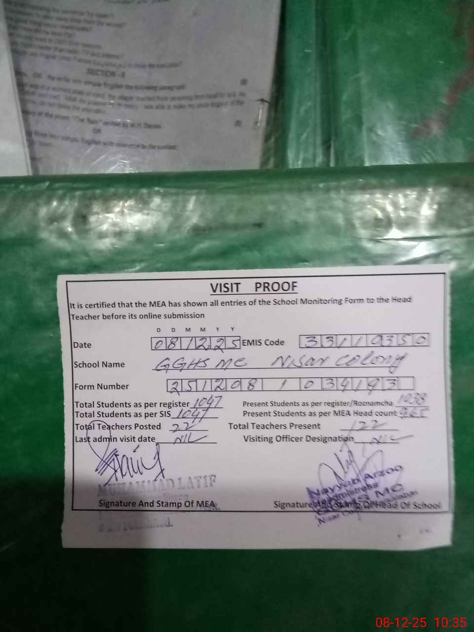 | EMIS Code: 33110350 | Name of School: GGHSS MC NISAR COLONY FAISALABAD | |||