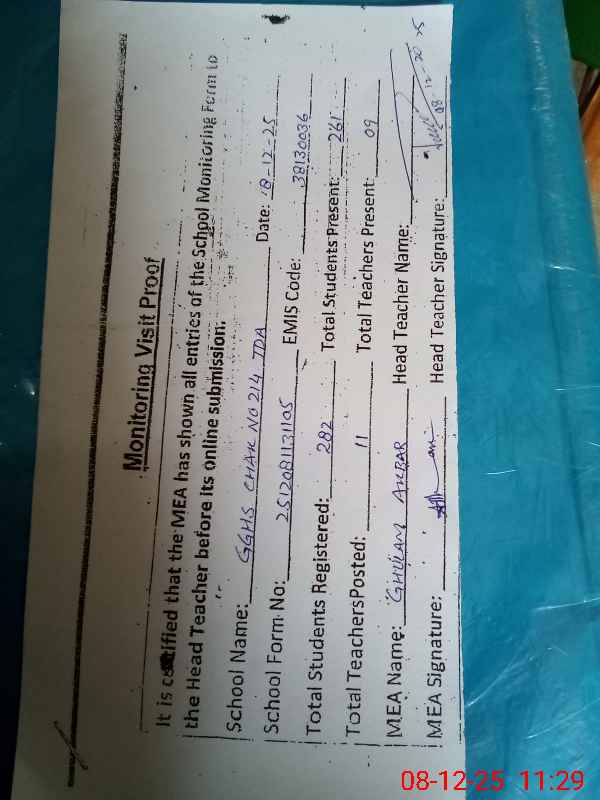 | EMIS Code: 38130036 | Name of School: GGHS CHAK NO. 214 TDA | |||