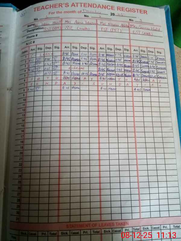 | Name: Ta**** Ha**** Designation: (School Headmaster's/Headmistress's) S.S.T.(Arts) Phone/Cell Number: 03**** |