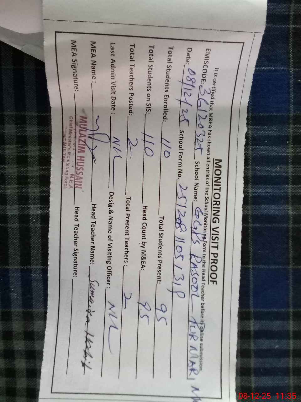 | EMIS Code: 36120325 | Name of School: GGPS RASOOL PUR MARI | |||