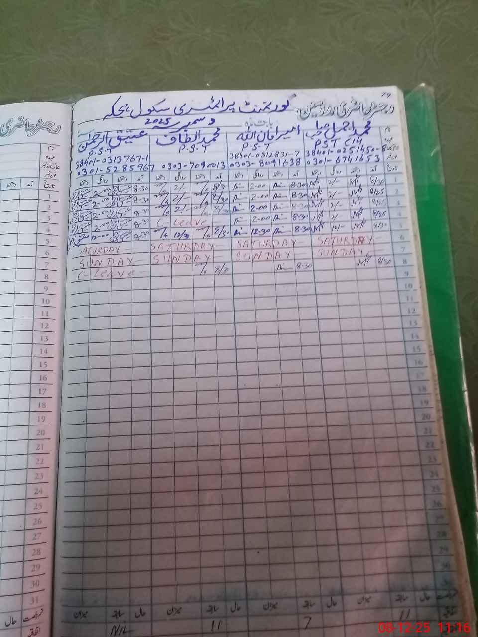 | Name: Mu**** Aj**** Designation: (School Headmaster's/Headmistress's) PST Phone/Cell Number: 03**** |