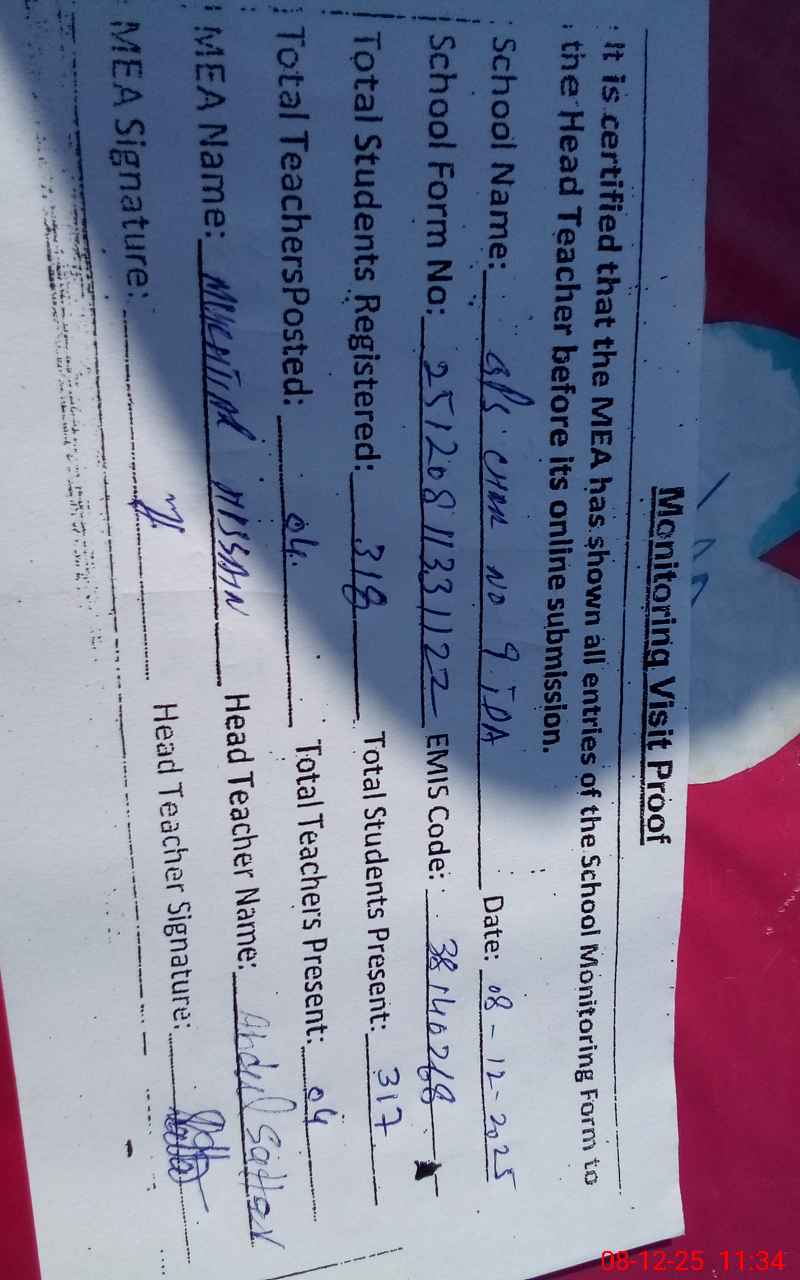 | Attendance Register | Head Teacher | MEA with School | Visit Proof |