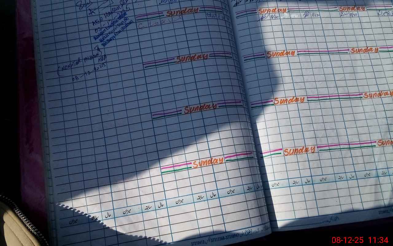 | CNIC | Full Name | Designation | R/C | Absence During Last Calender Month |