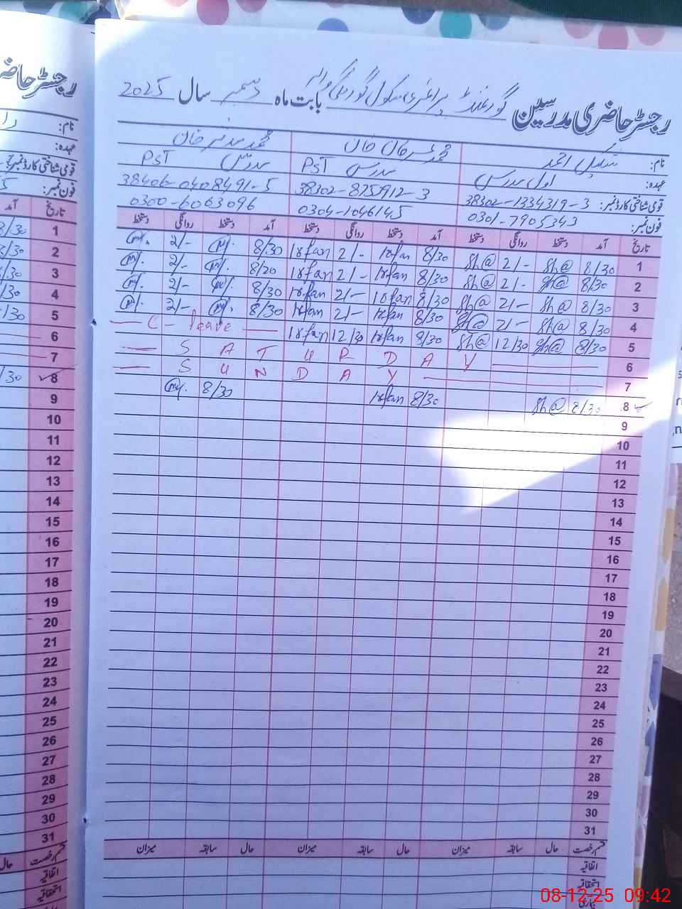 | Name: Sh**** Ah**** Designation: (School Headmaster's/Headmistress's) PST Phone/Cell Number: 03**** |