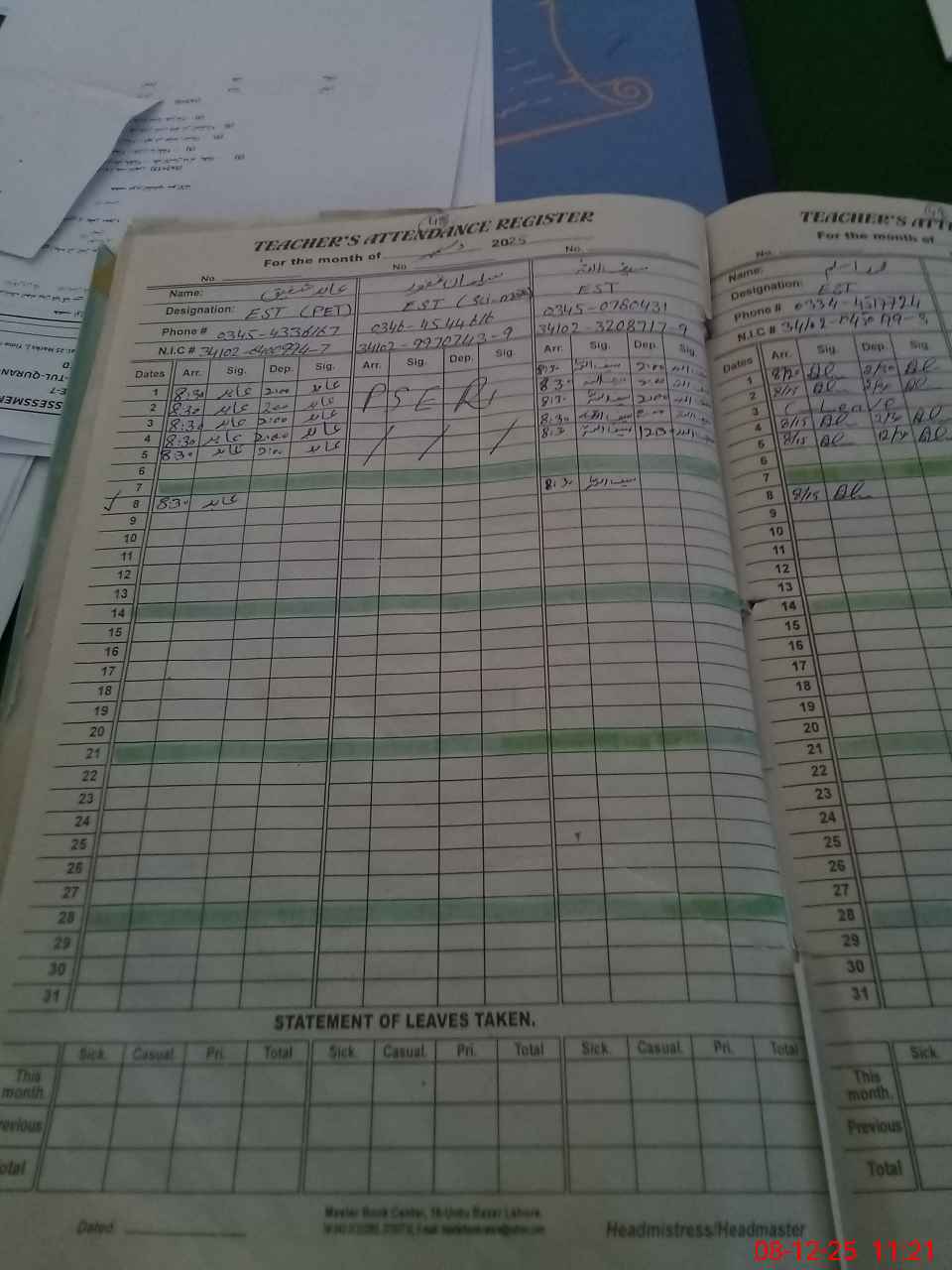 | Name: AB**** SH**** Designation: (School Headmaster's/Headmistress's) EST Phone/Cell Number: 03**** |