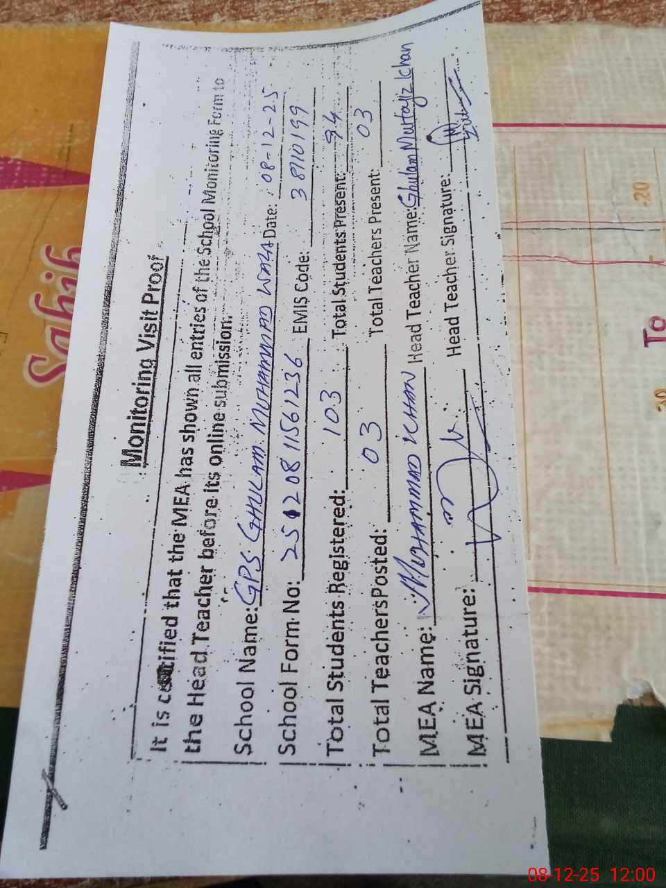 | EMIS Code: 38110199 | Name of School: GPS GHULAM MUHAMMAD WALA PO KHANSAR | |||