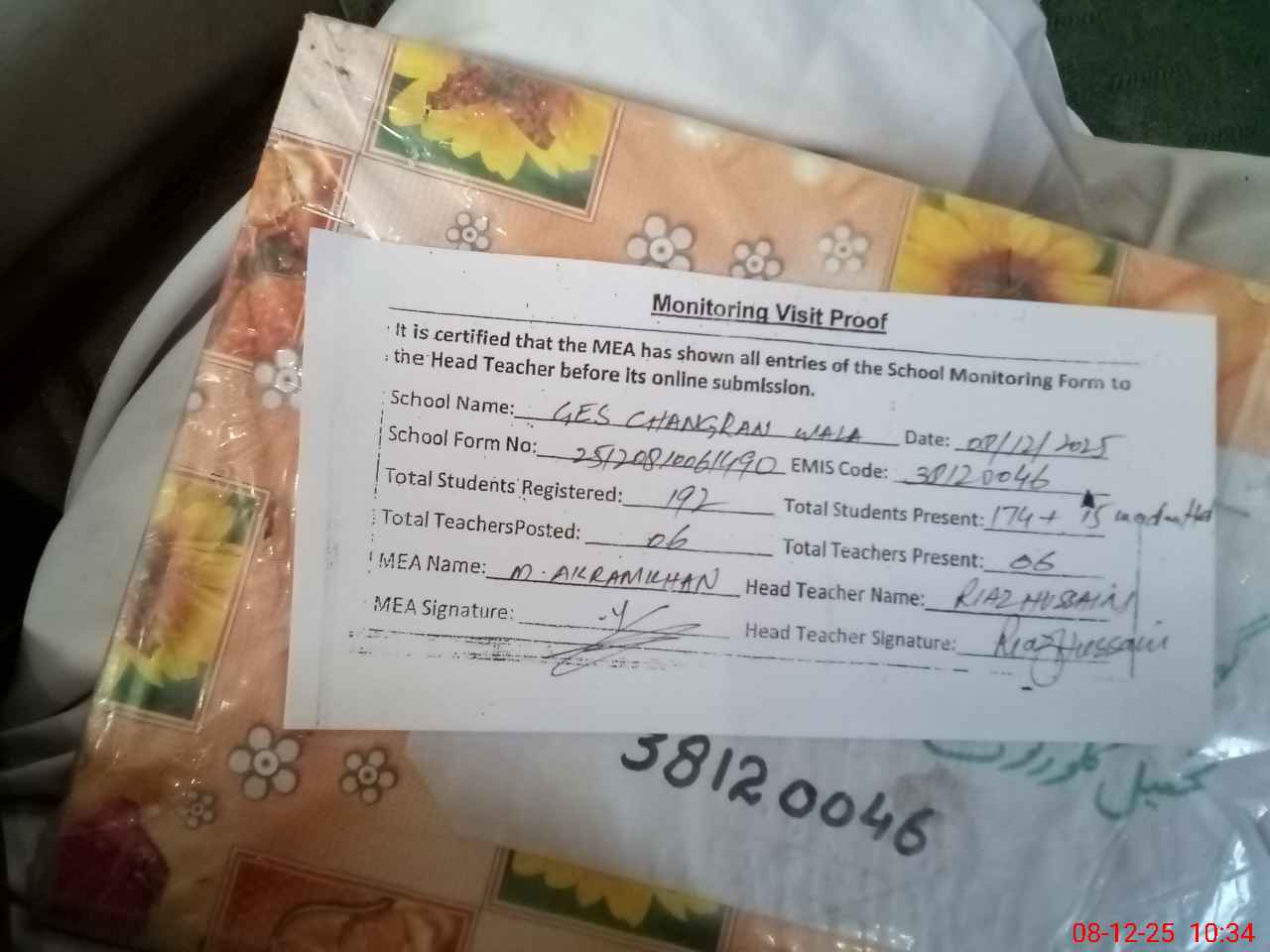 | EMIS Code: 38120046 | Name of School: GES CHANGRAN WALA | |||