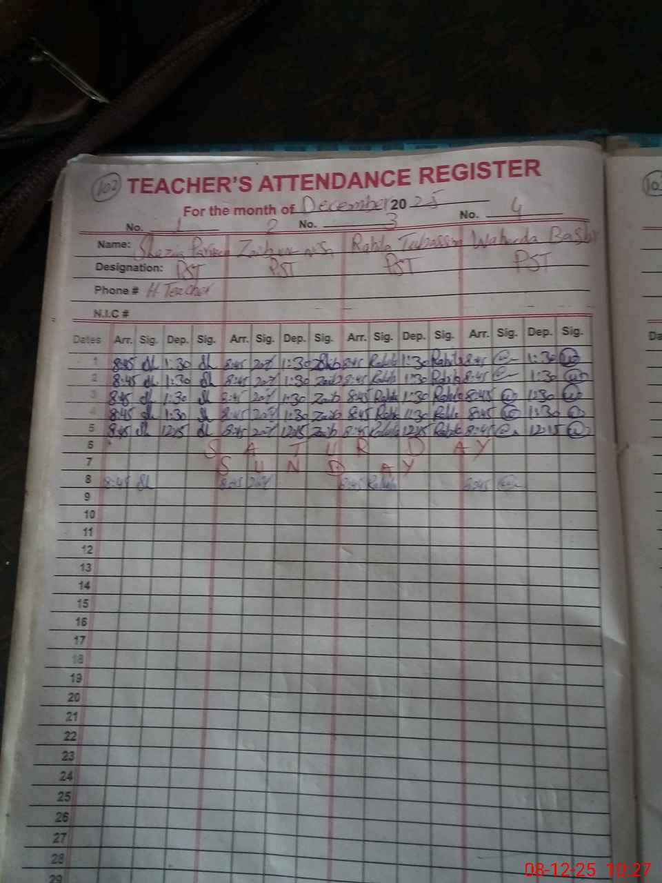 | Name: Sh**** Pe**** Designation: (School Headmaster's/Headmistress's) PST Phone/Cell Number: 03**** |