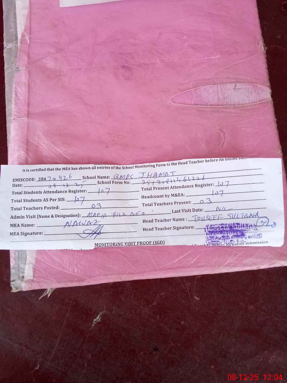 | EMIS Code: 38470426 | Name of School: GMPS JHAMAT | |||