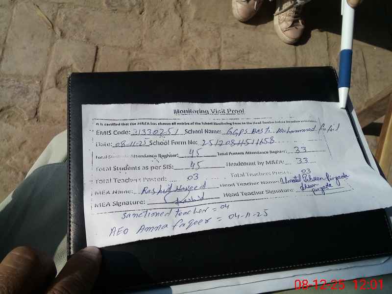 | Attendance Register | Head Teacher | MEA with School | Visit Proof |