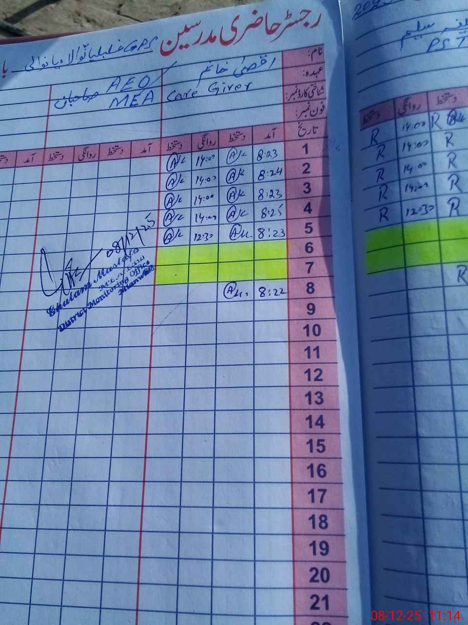| Name: IS**** UL**** Designation: (School Headmaster's/Headmistress's) PST Phone/Cell Number: 03**** |