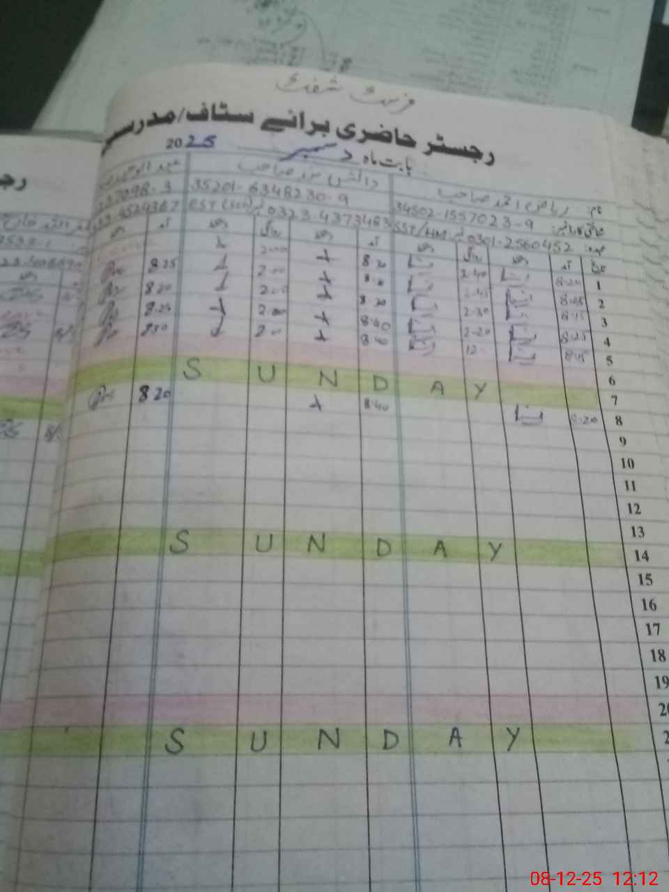 | CNIC | Full Name | Designation | R/C | Absence During Last Calender Month |