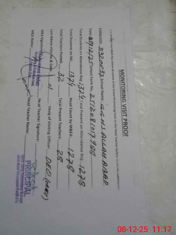 | EMIS Code: 31320037 | Name of School: GGHS ALLAH ABAD | |||
