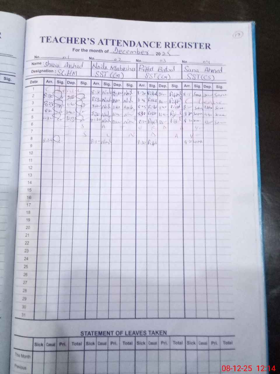 | Name: SH**** AR**** Designation: (School Headmaster's/Headmistress's) Sr Headmistress Phone/Cell Number: 03**** |