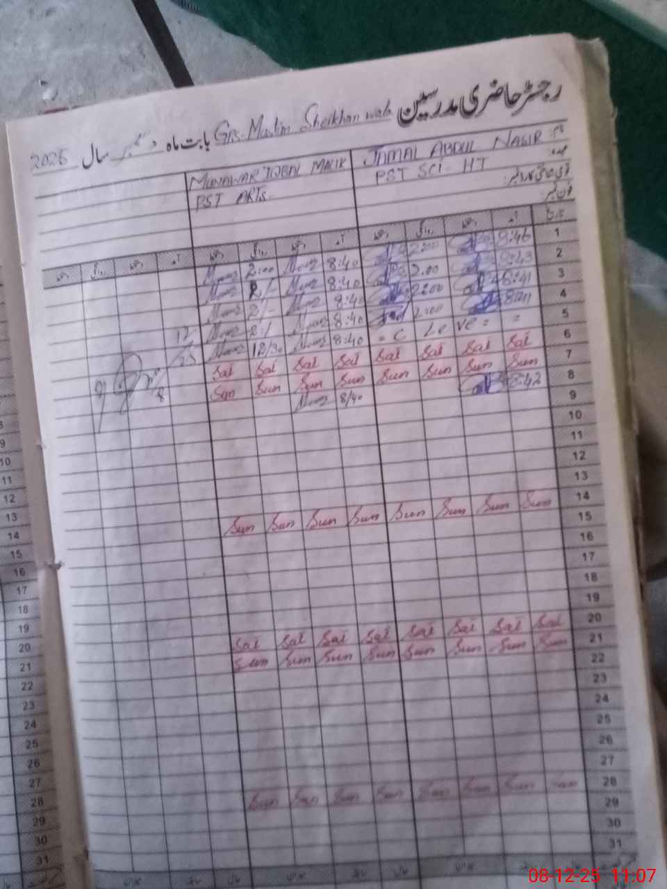 | CNIC | Full Name | Designation | R/C | Absence During Last Calender Month |