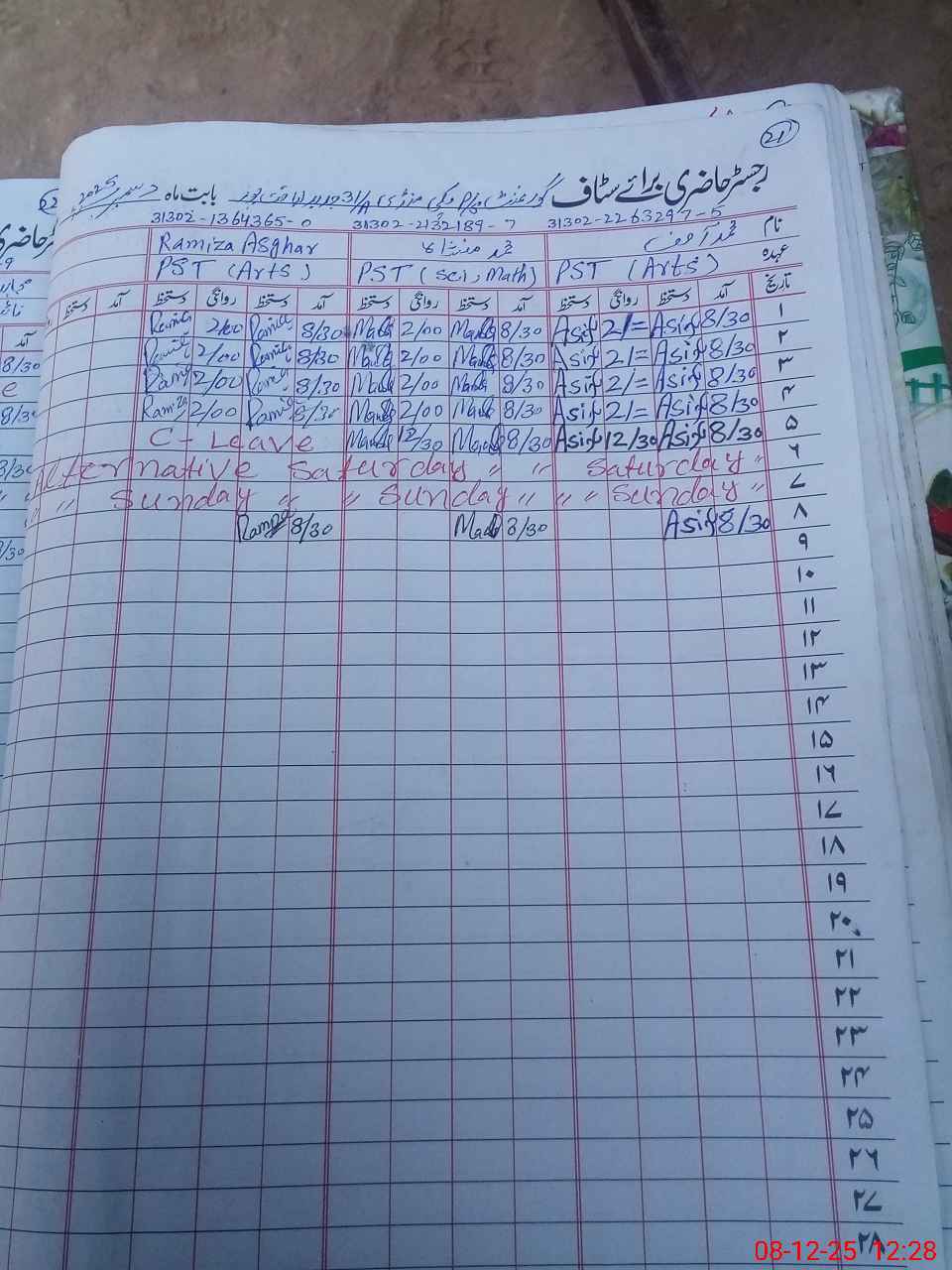 | Name: MU**** MA**** Designation: (School Headmaster's/Headmistress's) PST Phone/Cell Number: 03**** |