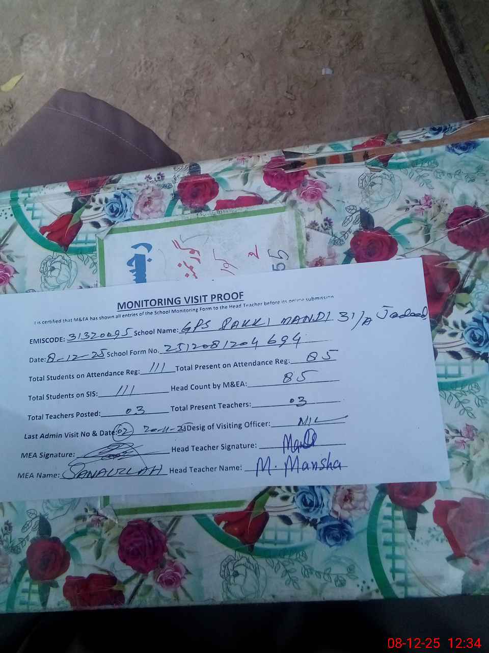| EMIS Code: 31320095 | Name of School: GPS PAKKI MANDI 31/A JADEED | |||