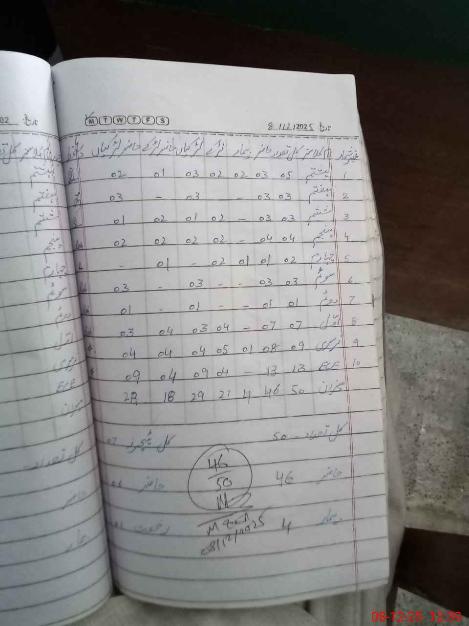 | Total Students Present | 0 | 13 | 7 | 1 | 3 | 1 | 4 | 3 | 3 | 3 | 46 | |||||