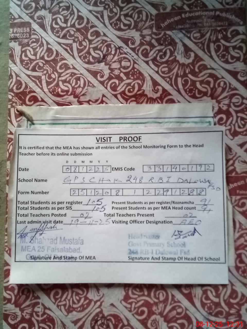 | EMIS Code: 33140192 | Name of School: GPS CHAK 248 RBI DALOWAL | |||