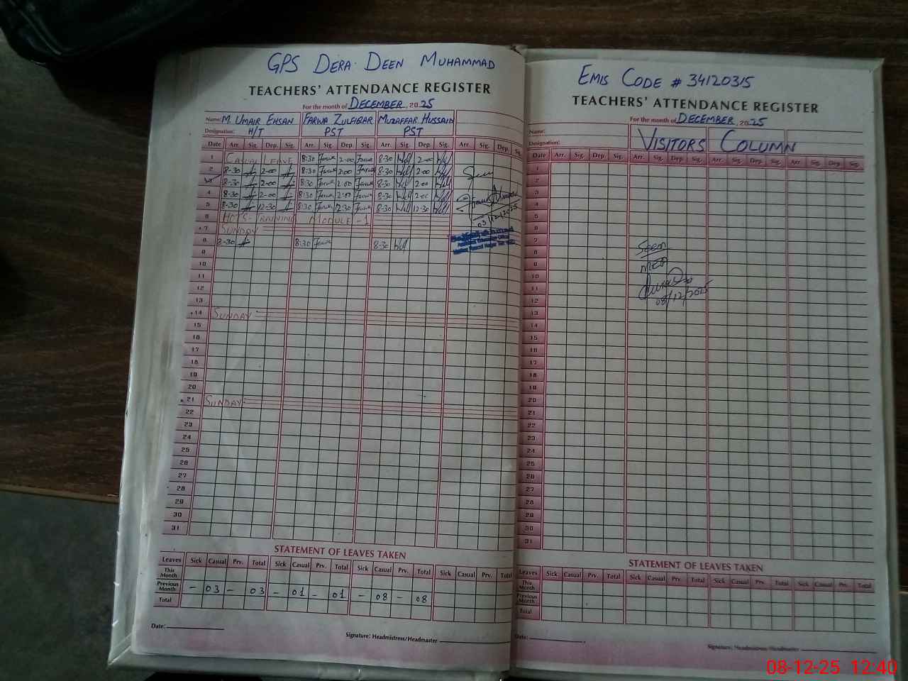 | EMIS Code: 34120315 | Name of School: GPS DERA DIN MUHAMMAD | |||