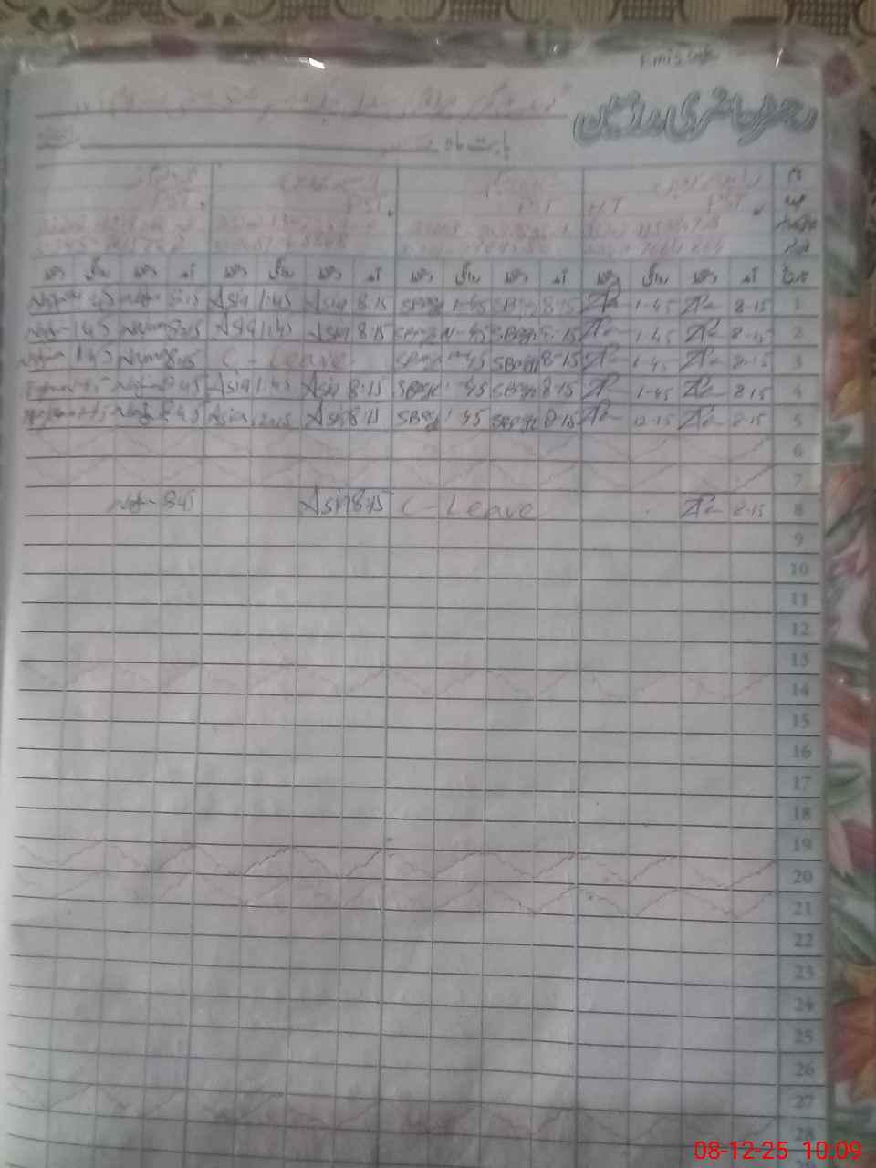 | CNIC | Full Name | Designation | R/C | Absence During Last Calender Month |