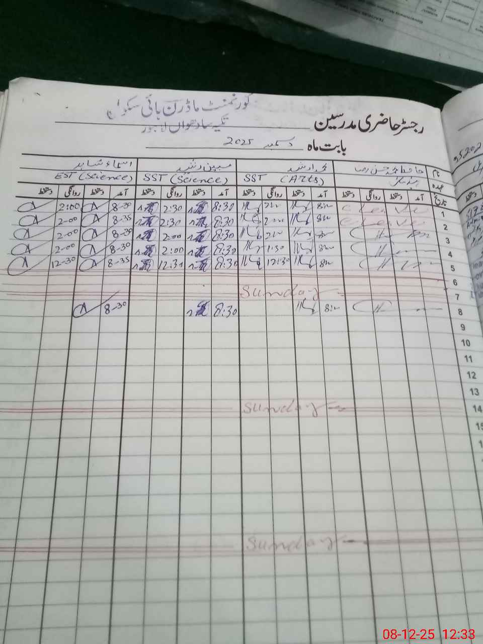 | Remarks (Use Separate Page if Required): 1 Ayesha Fatima EST is perform duty in GGHSS Singh Pura with out any written order so I marked absent from duty since 14 April 2025 to till date | |||||