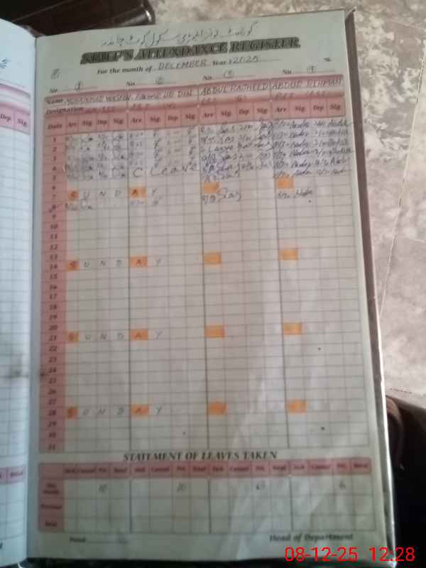 | CNIC | Full Name | Designation | R/C | Absence During Last Calender Month |