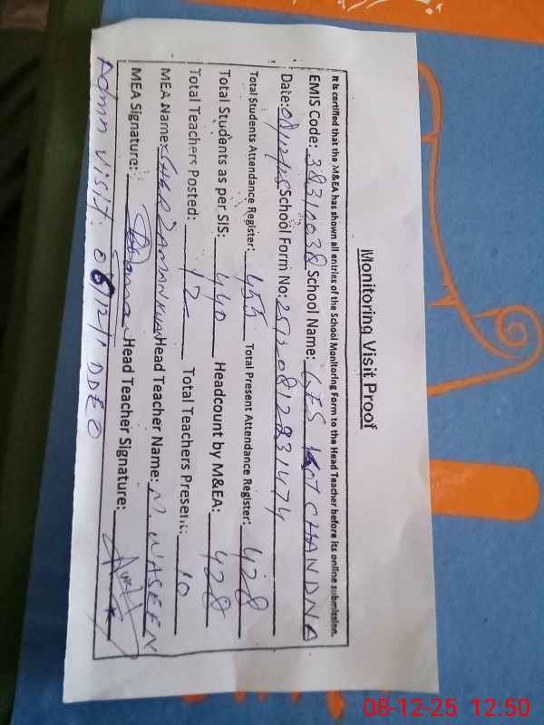 | EMIS Code: 38310038 | Name of School: GES KOT CHANDNA | |||