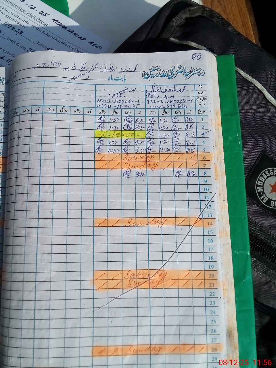 | Name: MU**** FA**** IQ**** Designation: (School Headmaster's/Headmistress's) PST Phone/Cell Number: 03**** |