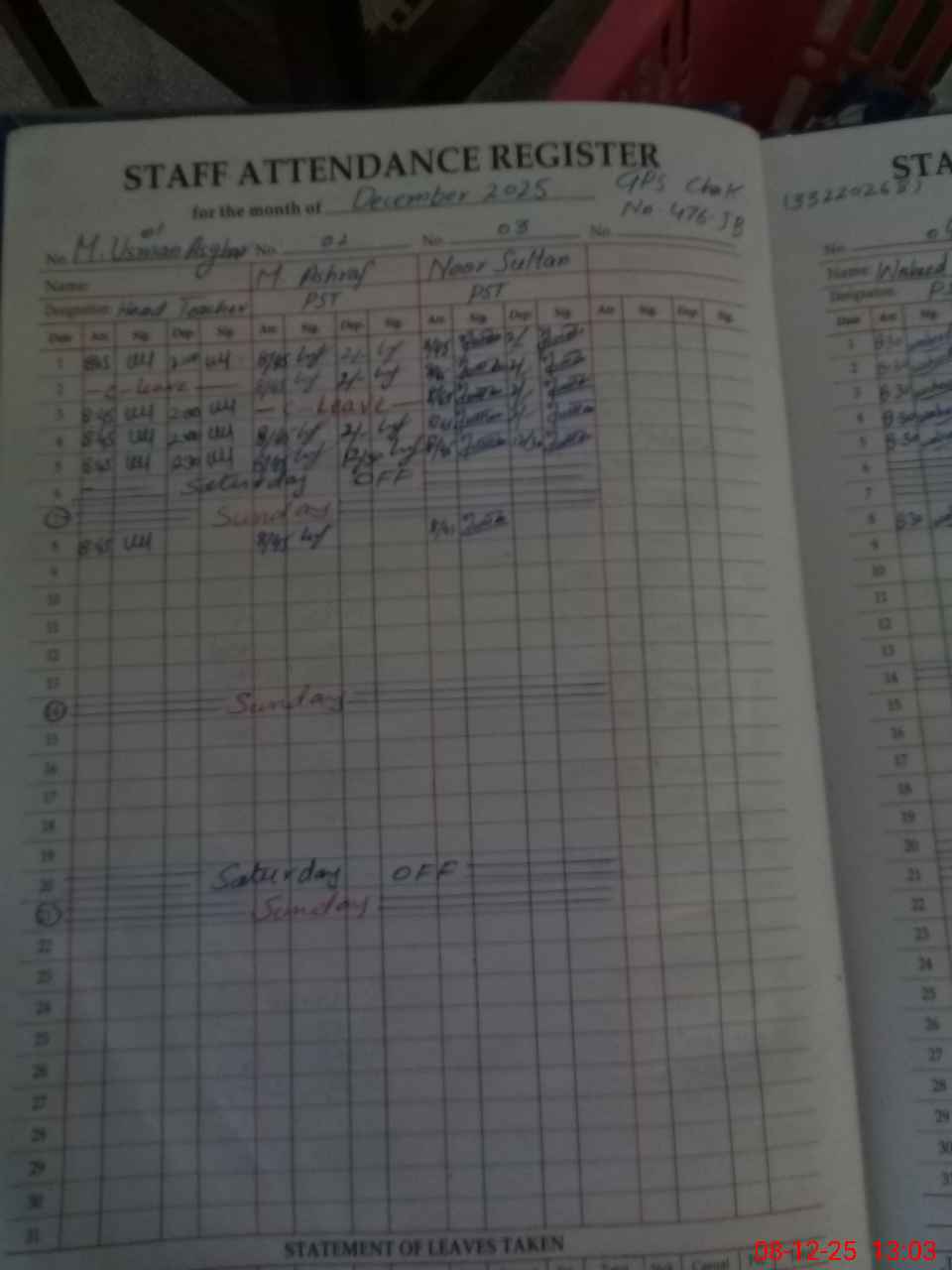 | 33**** | Sh**** Ka**** | PST Science/Maths | Regular | 0 | 0 | 0 | 0 | 0 | 0 | 0 | 0 | 0 | Casual |