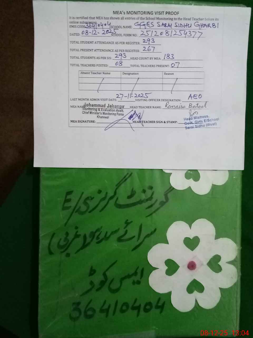 | EMIS Code: 36410404 | Name of School: GGES SARAI SIDHU GHARBI, SARAI SIDHU | |||