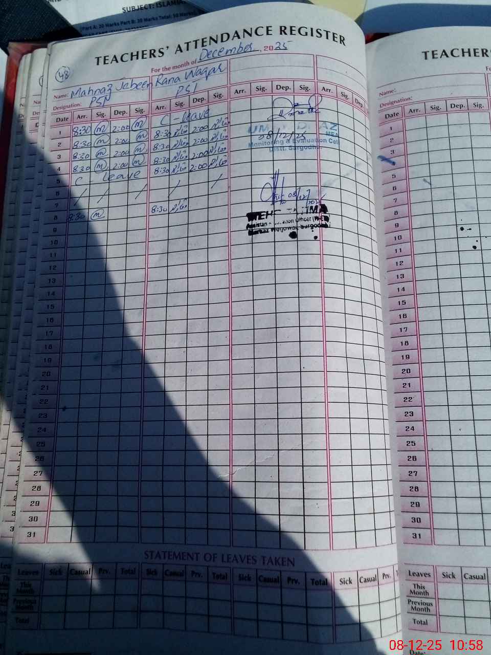| Name: RA**** WA**** AH**** Designation: (School Headmaster's/Headmistress's) PST Phone/Cell Number: 03**** |