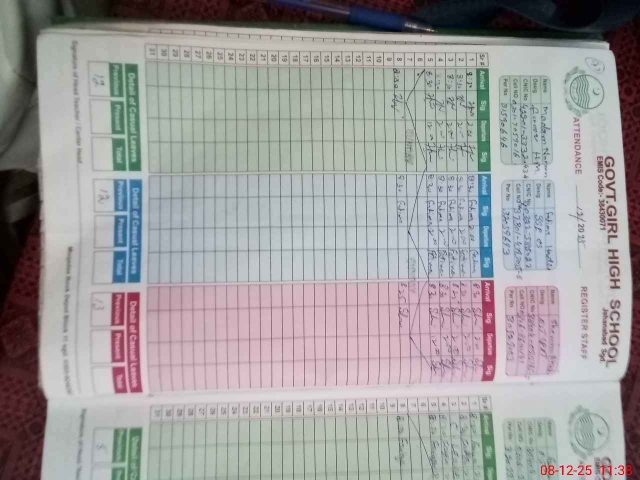 | Name: NO**** FA**** Designation: (School Headmaster's/Headmistress's) SST (SCI) Phone/Cell Number: 03**** |