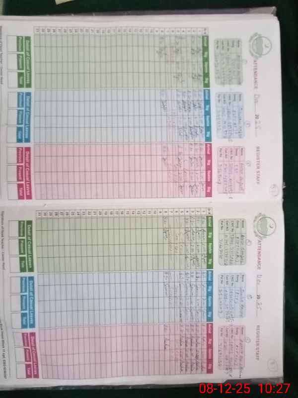 | CNIC | Full Name | Designation | R/C | Absence During Last Calender Month |