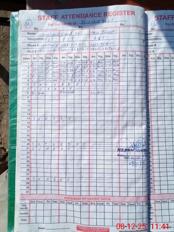 | Name: MAm**** Sa**** Designation: (School Headmaster's/Headmistress's) PST Phone/Cell Number: 03**** |
