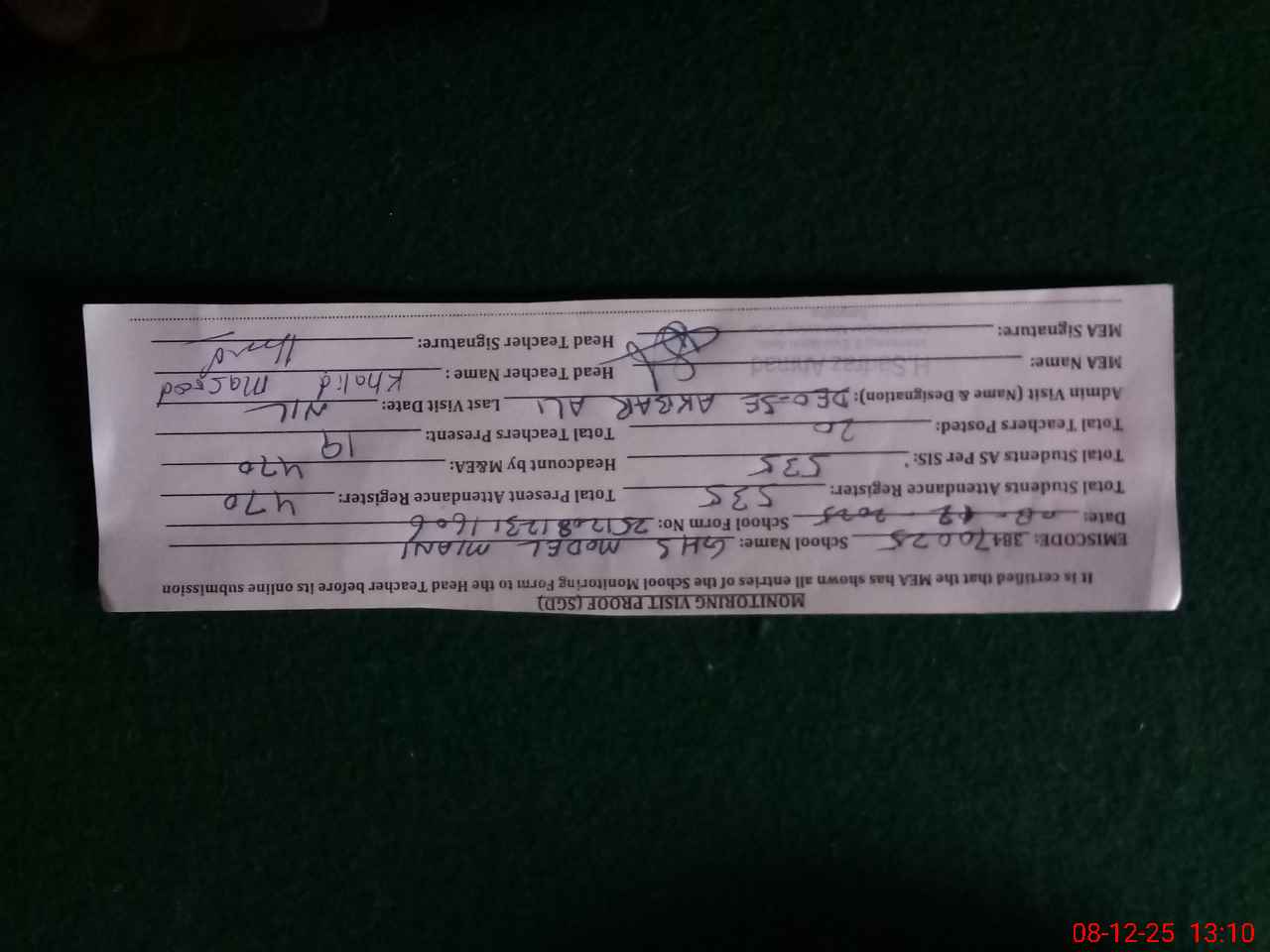 | Name: Kh**** Ma**** Designation: (School Headmaster's/Headmistress's) SST Phone/Cell Number: 03**** |